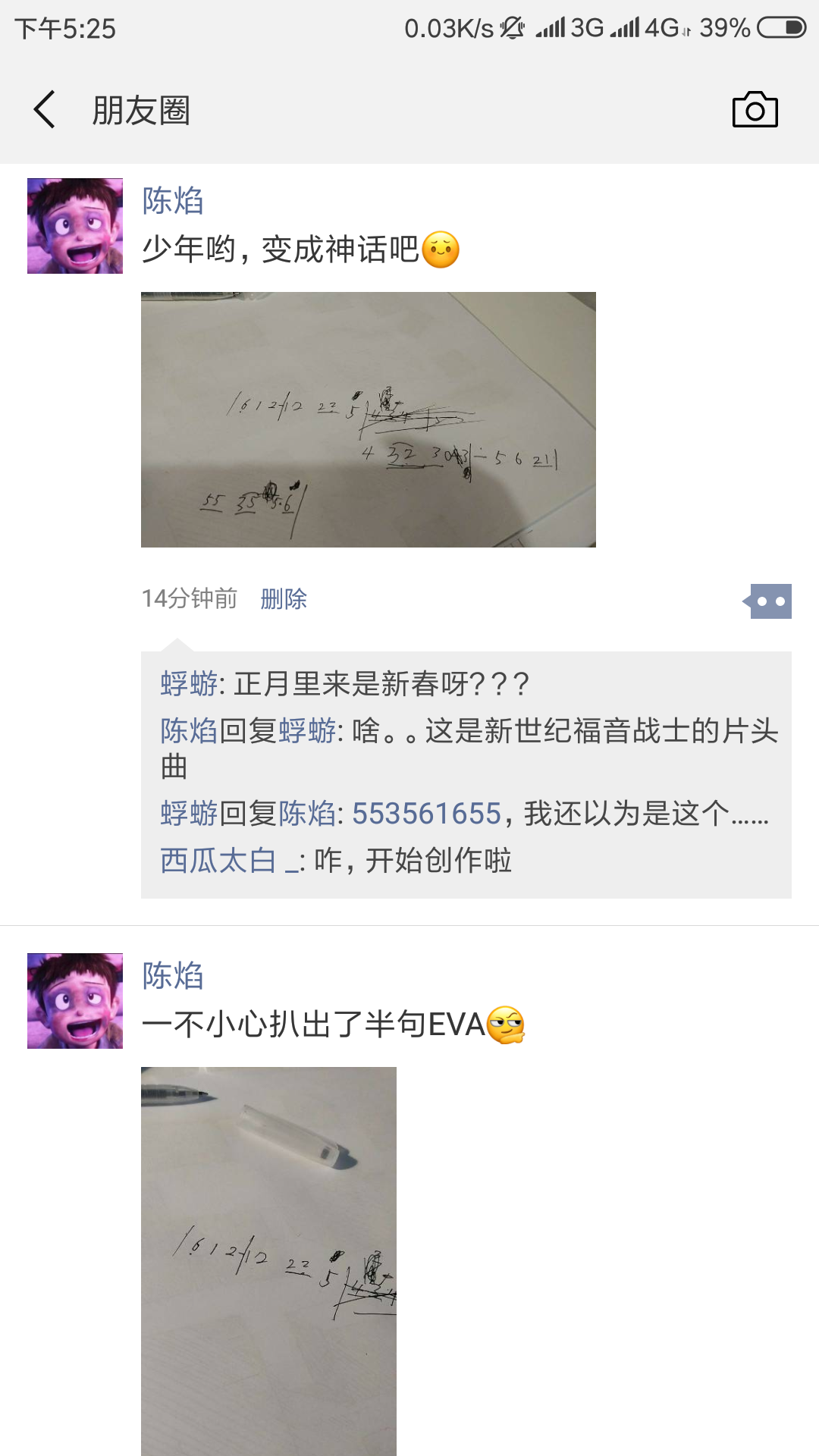 音高之后,开始试音的时长。再然后试吹几遍,加上连音线。于是,就有了这两条朋友圈: